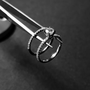 Un Anillo de brillantes y un Solitario de Oro blanco con un brillante de 0,43 quilate certificado HRD